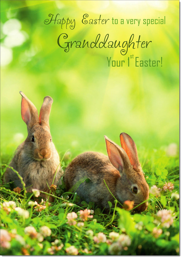Granddaughters 1st First Easter Card Two Bunnies on Grass