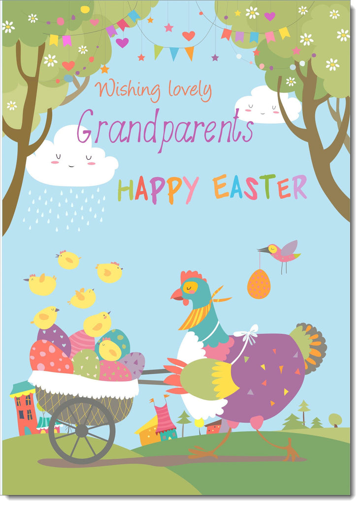 Grandparents Easter Card Mother Hen and Easter Eggs