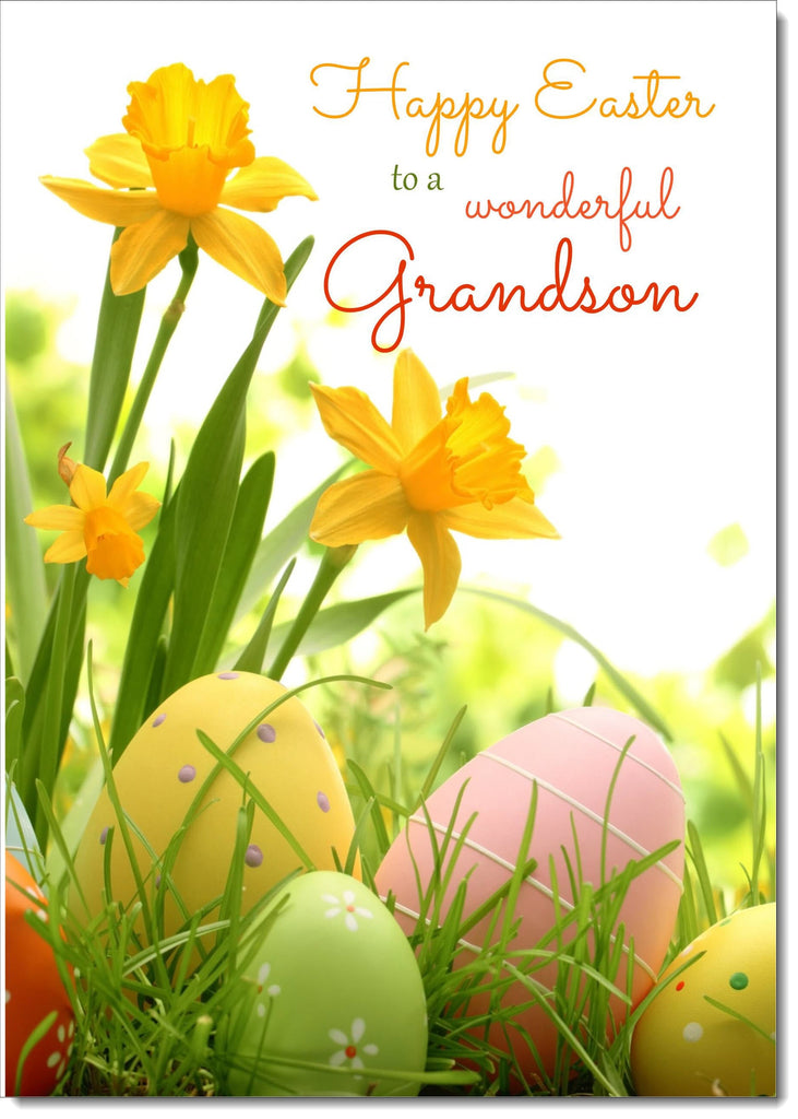 Grandson Easter Card Daffodils & Eggs