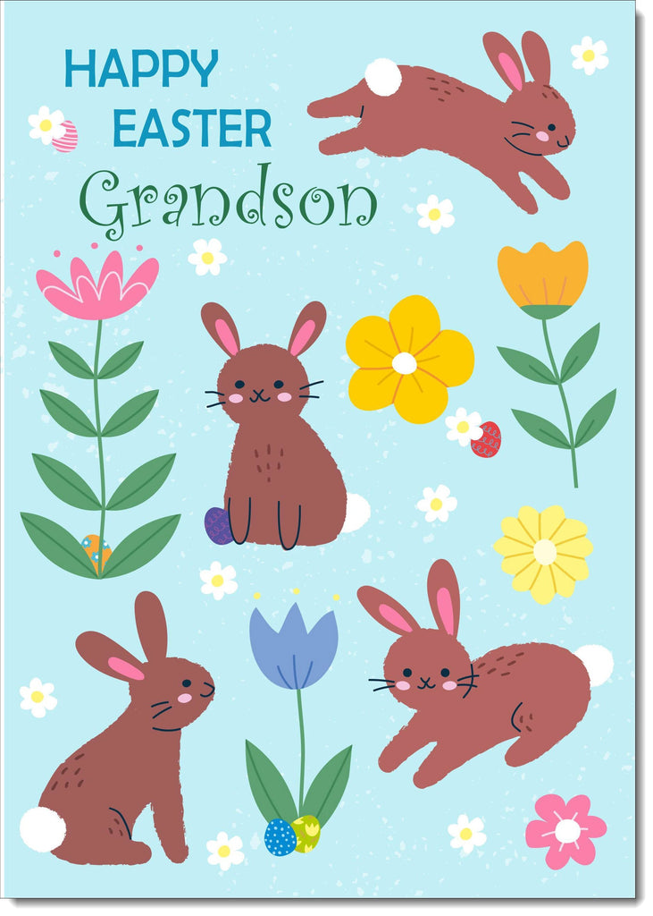 Grandson Easter Card Spring Flowers with Bunnies