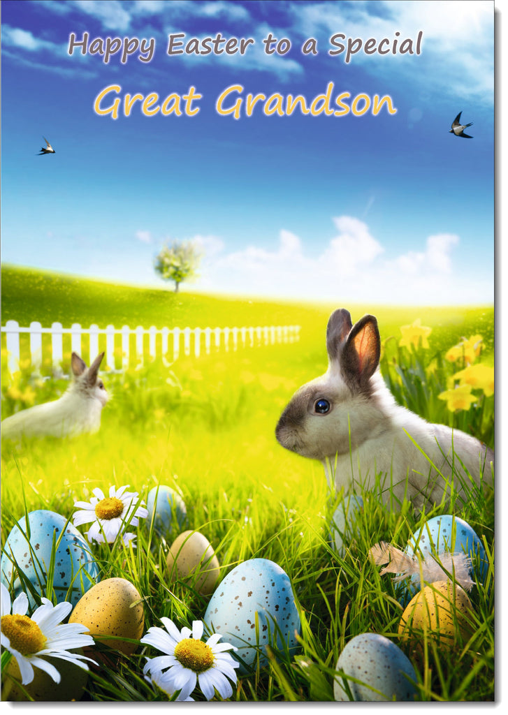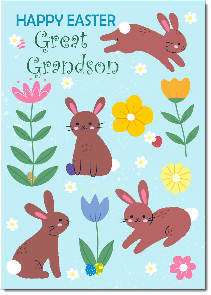 Great Grandson Easter Card Spring Flowers with Bunnies