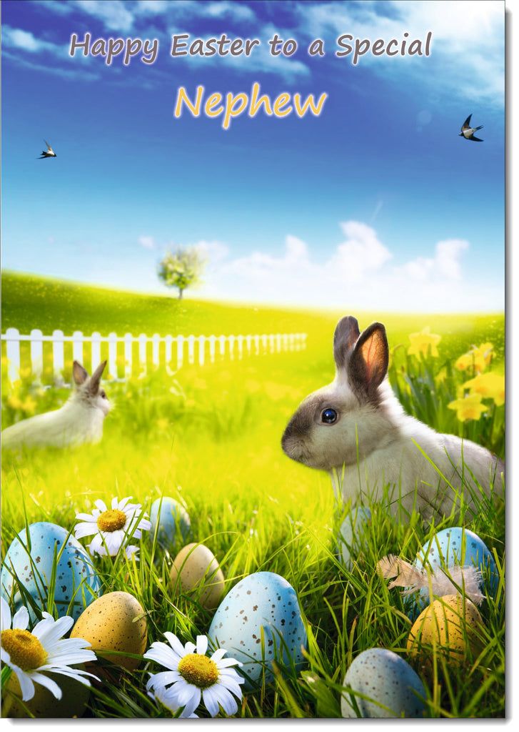Nephew Easter Card Bunnies in Field