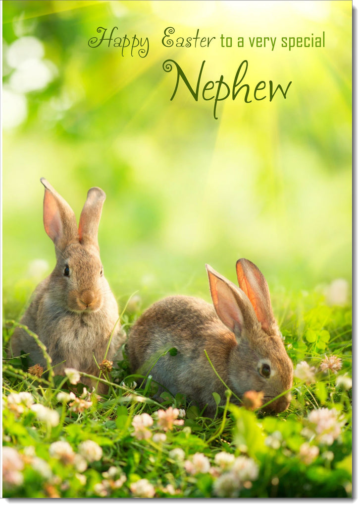 Nephew Easter Card Two Bunnies on Grass