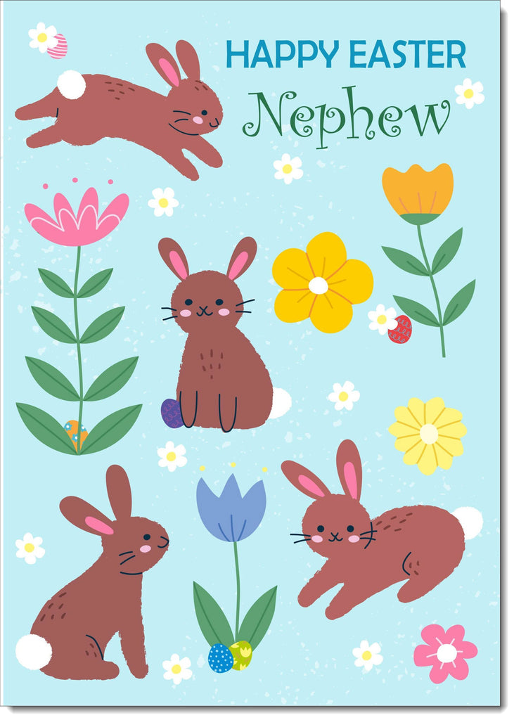 Nephew Easter Card Spring Flowers with Bunnies