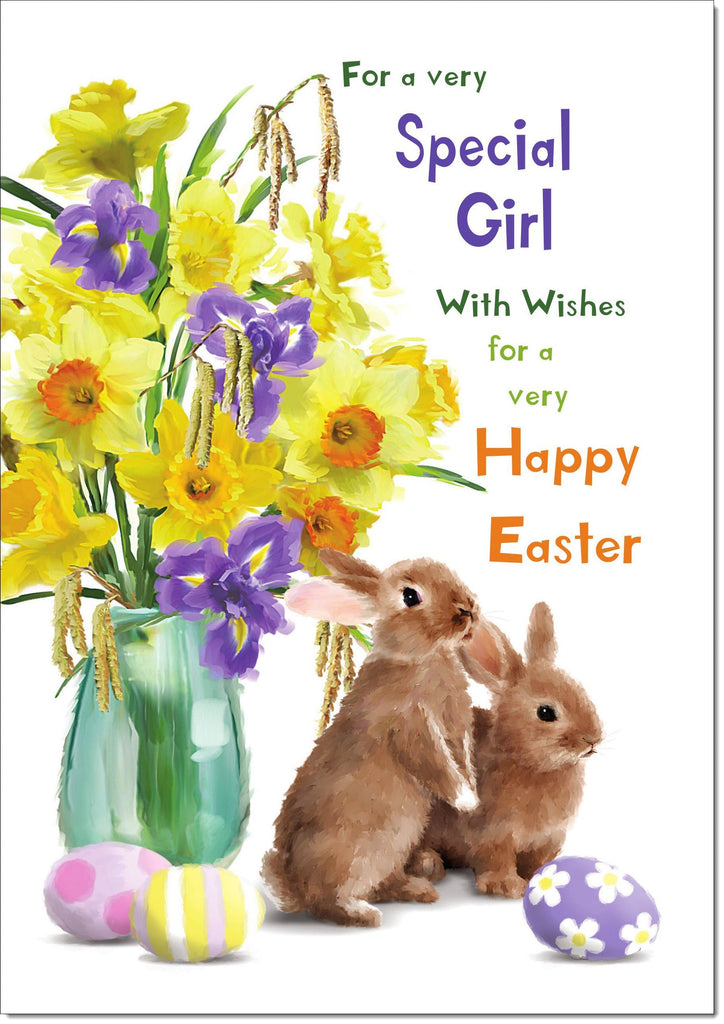 Special Girl Easter Card Easter Bunny and Eggs
