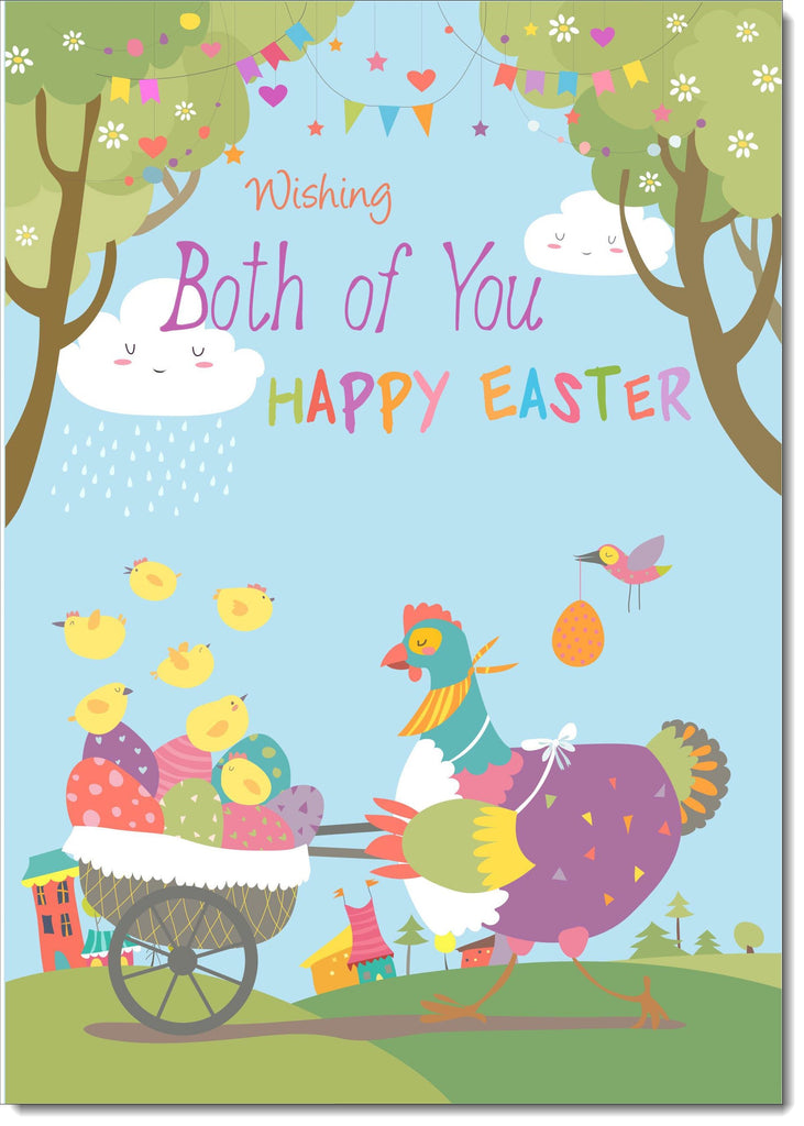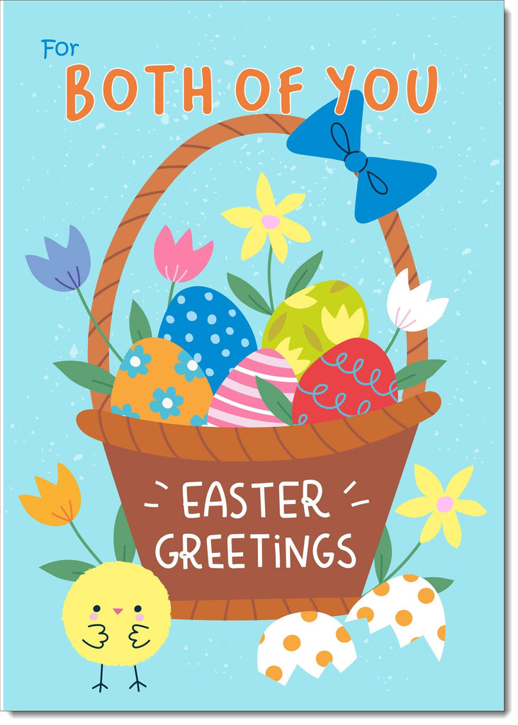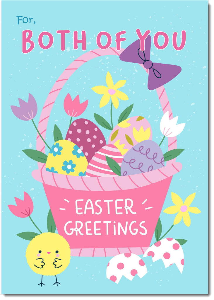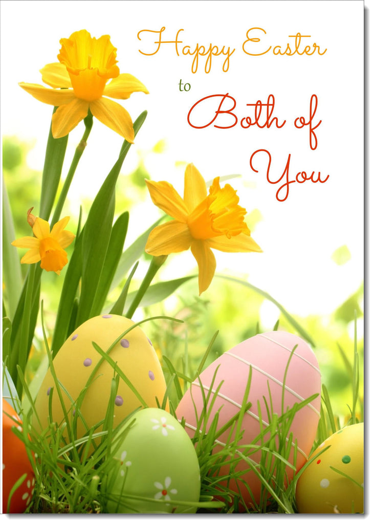 To Both Easter Card Vase of Daffodils with Bunnies and Eggs