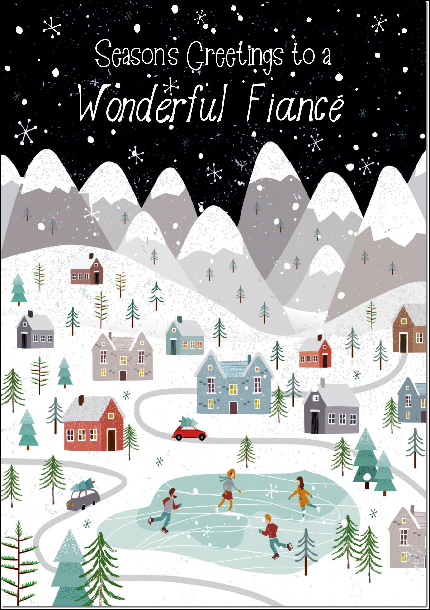 Fiance Christmas Card Mountain Scene In Snowy Village