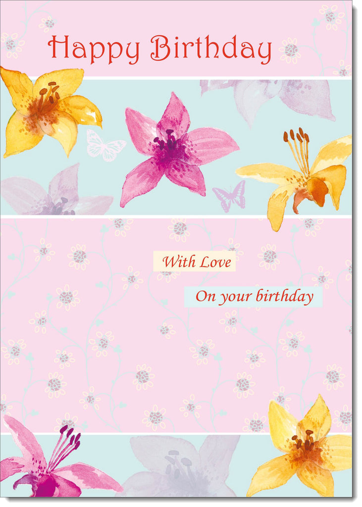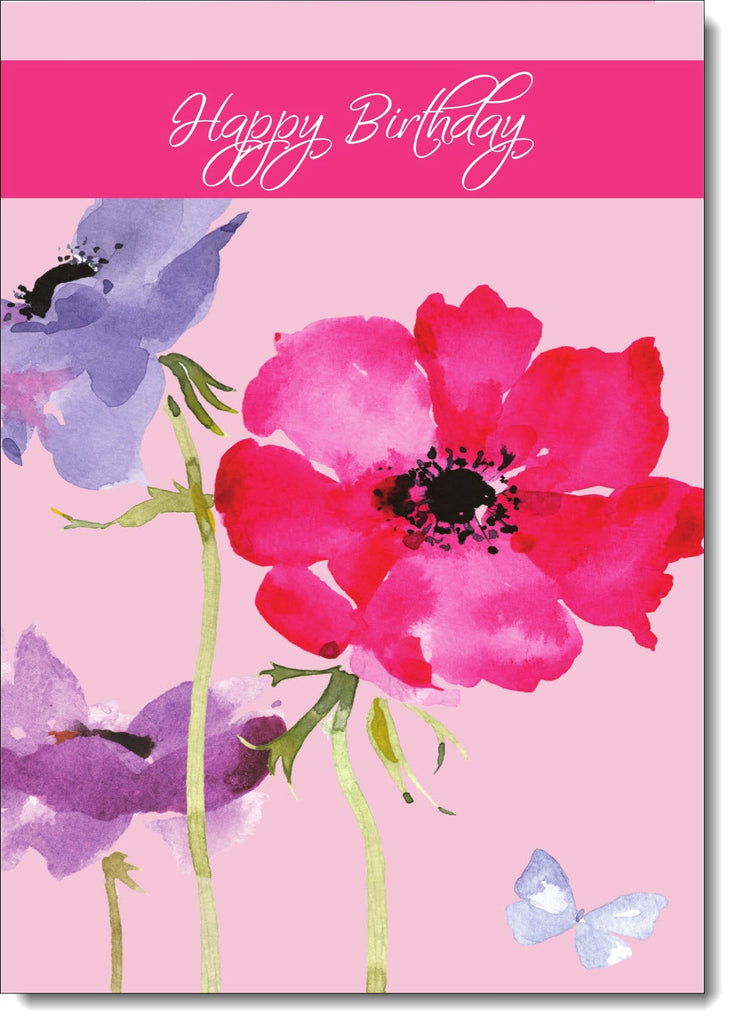 Happy Birthday Card Flowers and Butterflies