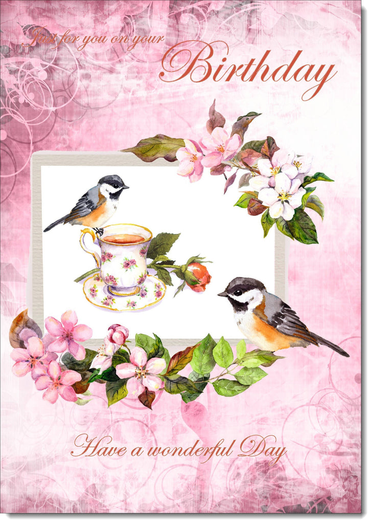 Blank Birthday Card No Words Tea Party Bouquet
