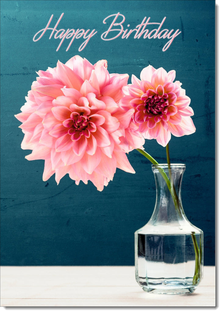 Happy Birthday Card Large Pink Flowers