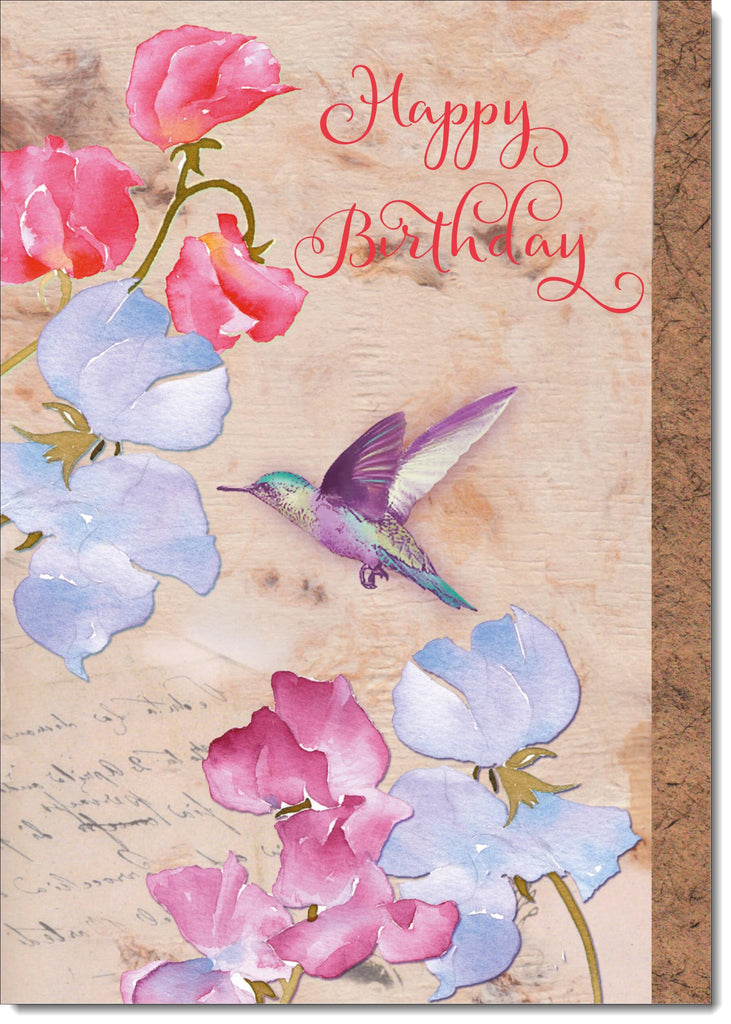 Happy Birthday Card Sweet Pea Flowers