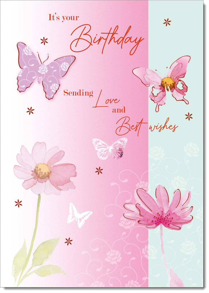 Floral Birthday Card Pink Blossom and Butterflies