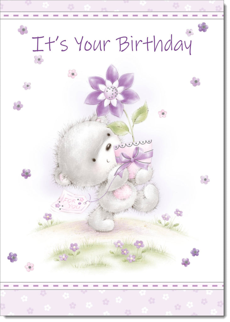 Happy Birthday Card Teddy and Flower