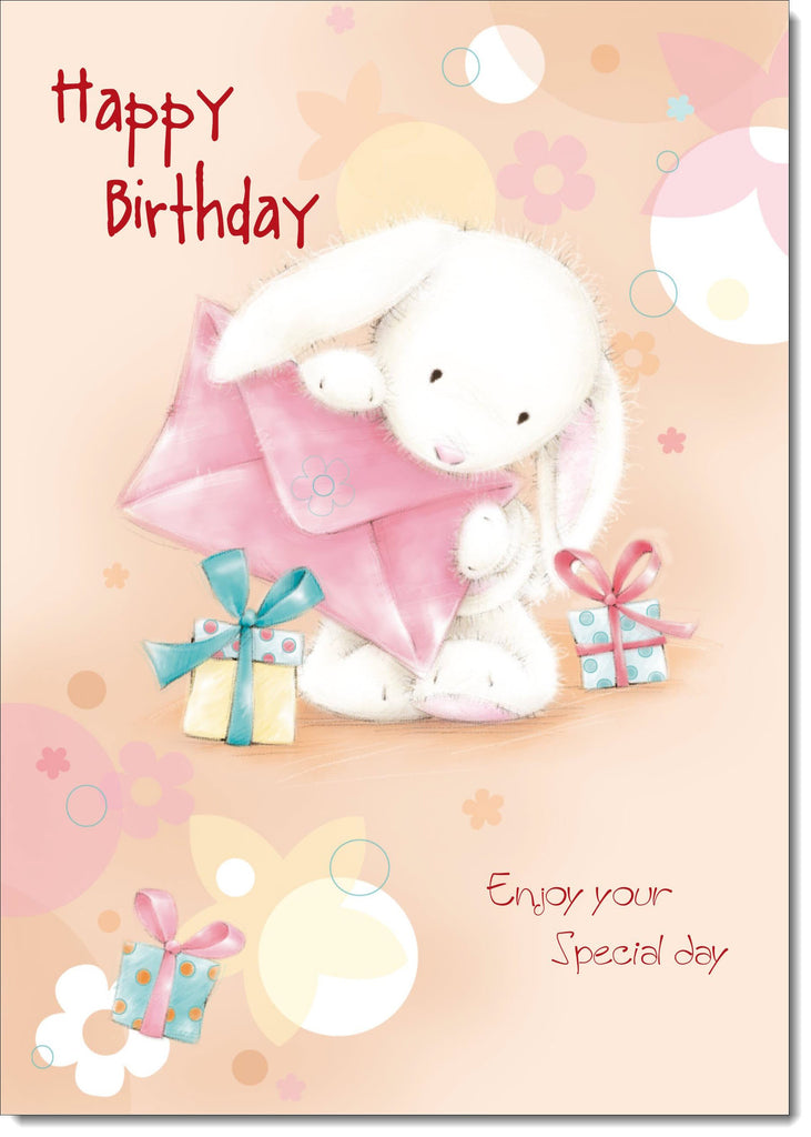 Happy Birthday Card Rabbit with Present