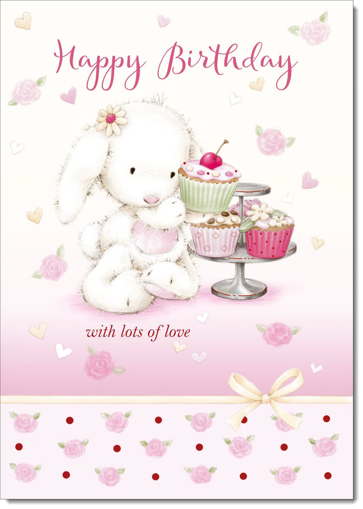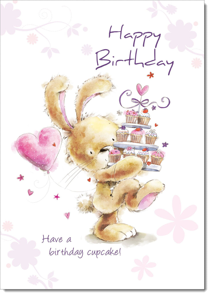 Happy Birthday Card Cute Rabbit with Cake