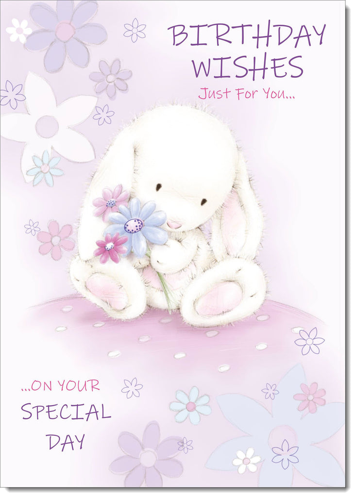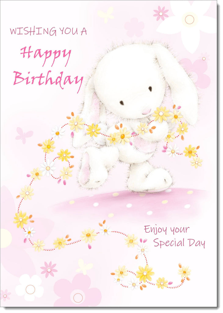 Happy Birthday Card Cute Rabbit with Flowers