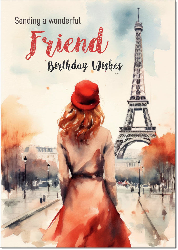 Friend Birthday Card for Her Paris, Eiffel Tower