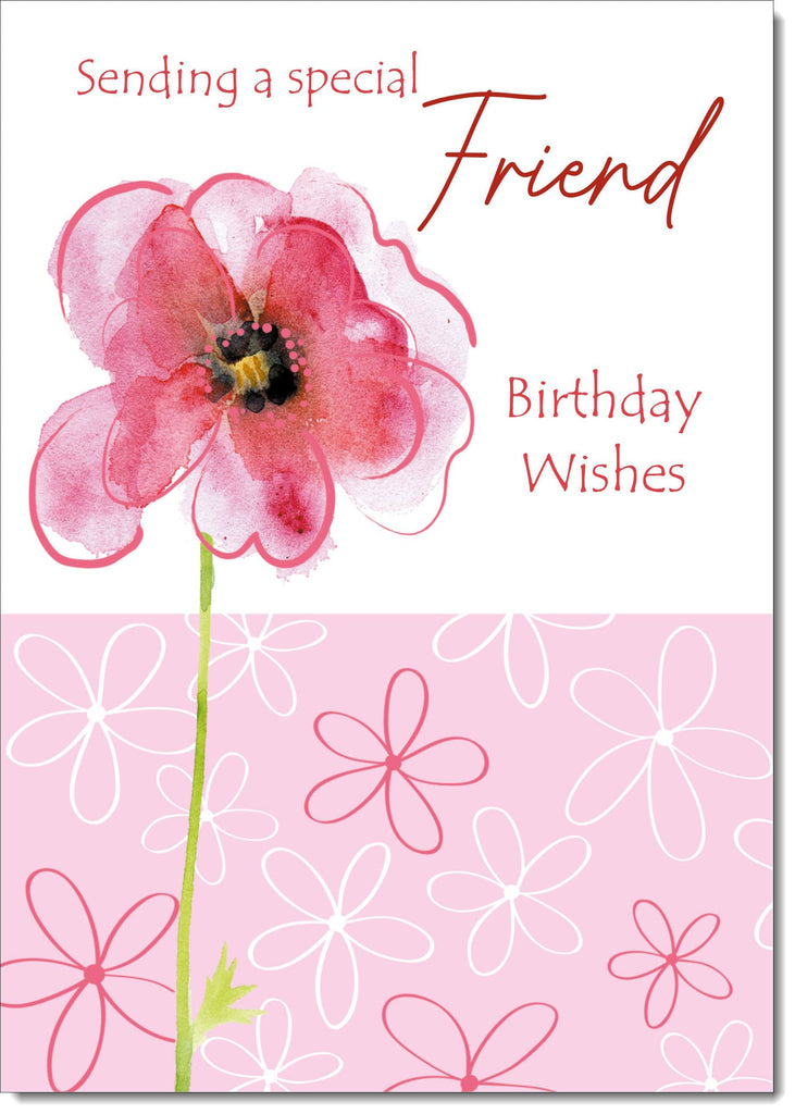 Friend Birthday Card for Her Birthday Cake and Flowers