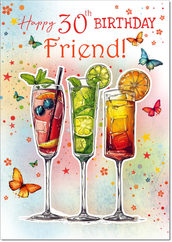 Friend 40th Birthday Card Age 40 Cocktails and Butterflies