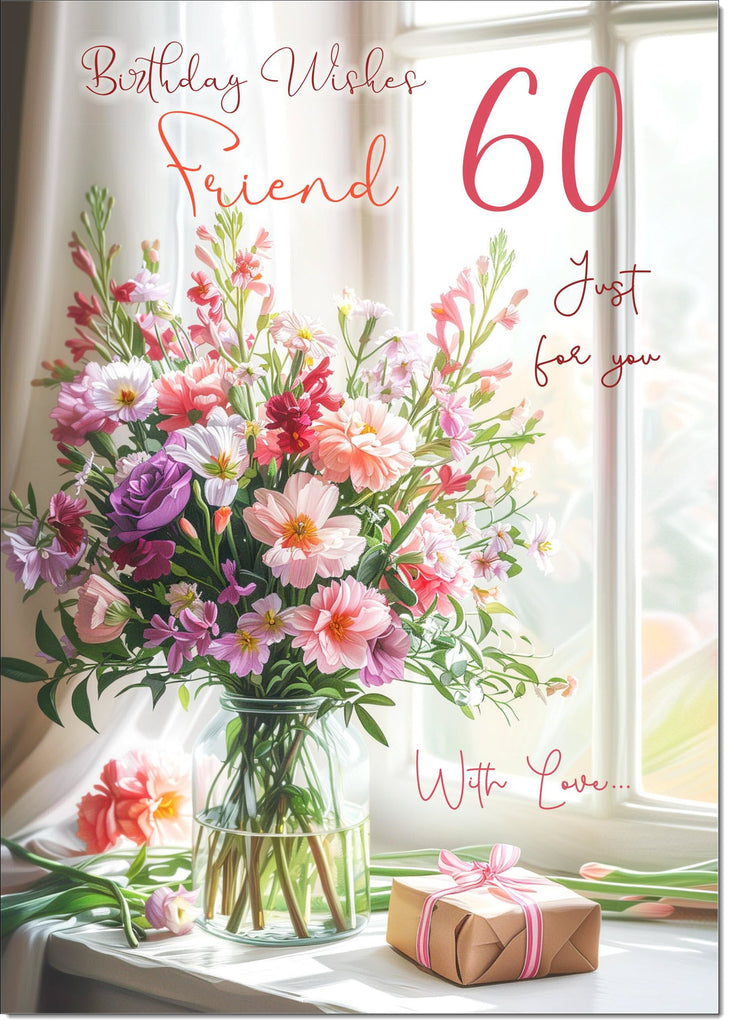 Friend 60th Birthday Card Age 60 Birthday Cake and Flowers