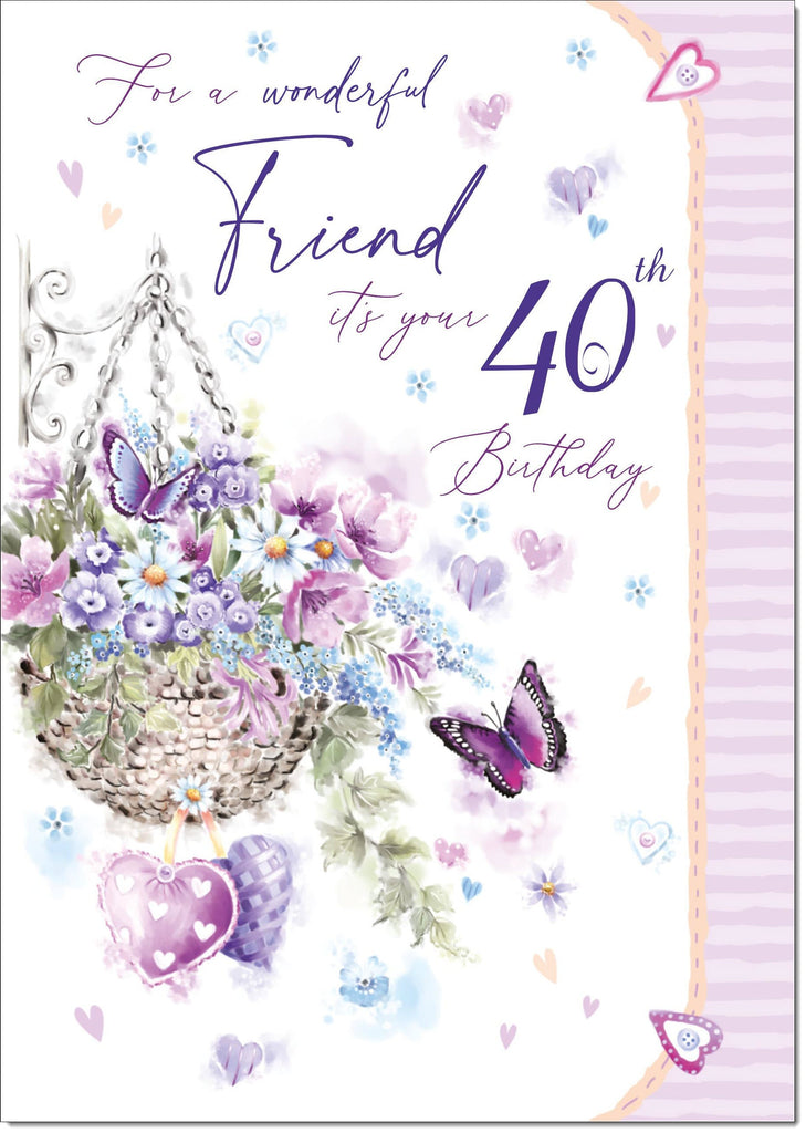 Friend 40th Birthday Card Age 40 Flower Bouquet and Present