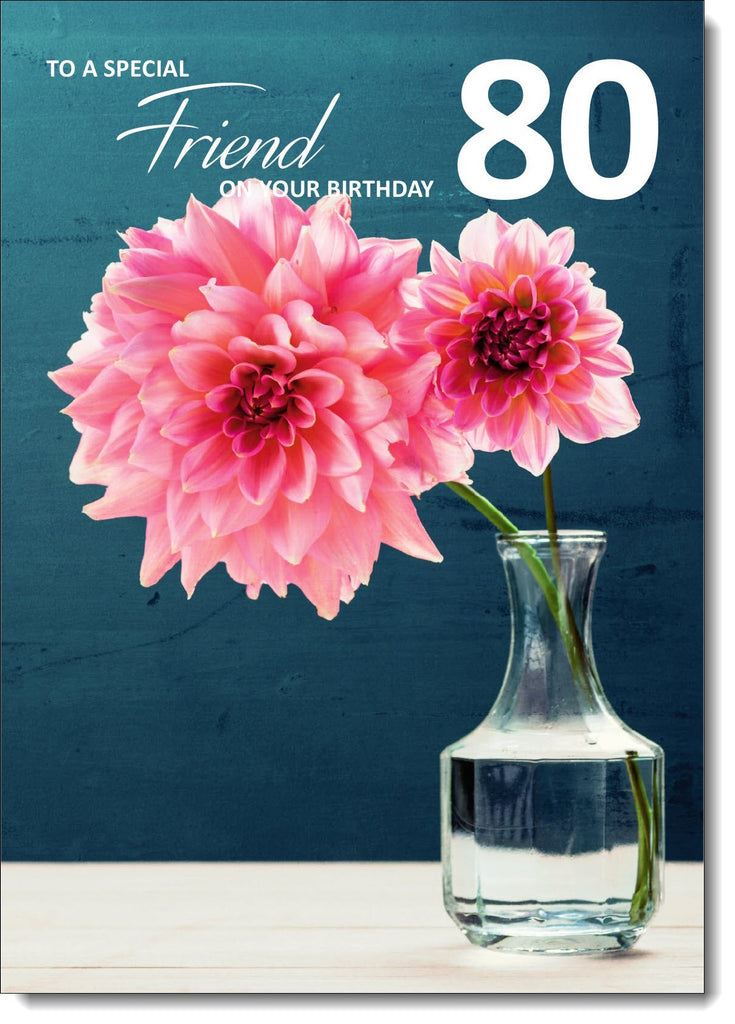 Friend 80th Birthday Card Age 80 Flower Bouquet and Present