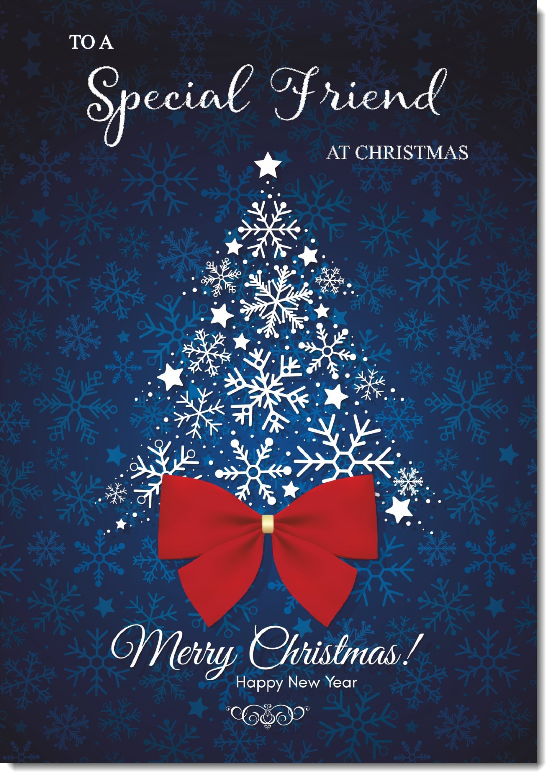 Special Friend Christmas Card Blue Abstract Christmas Tree