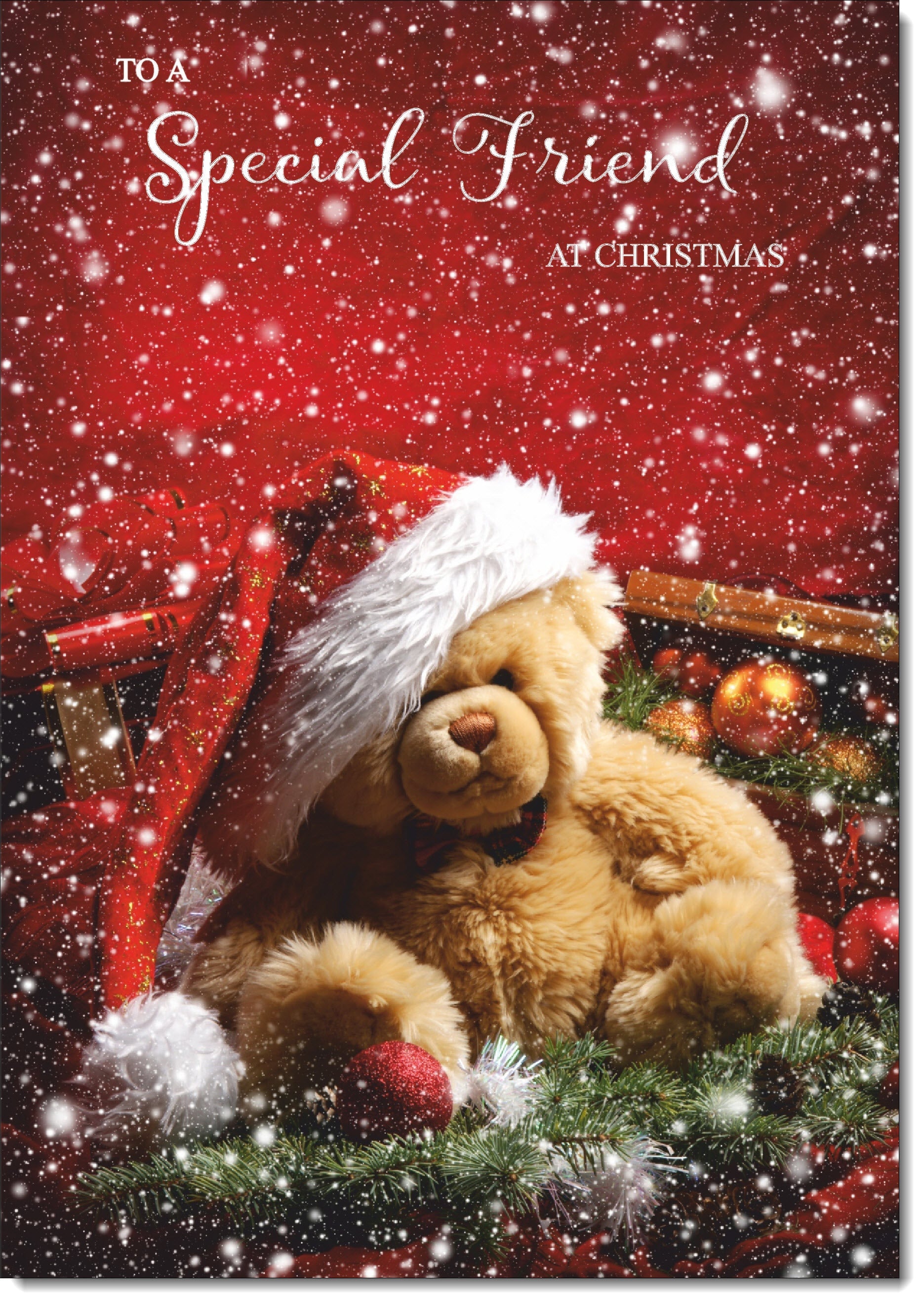 Special Friend Christmas Card Teddy Bear in Santa Hat