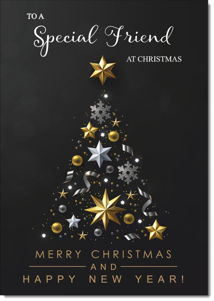 Special Friend Christmas Card Black Abstract Christmas Tree