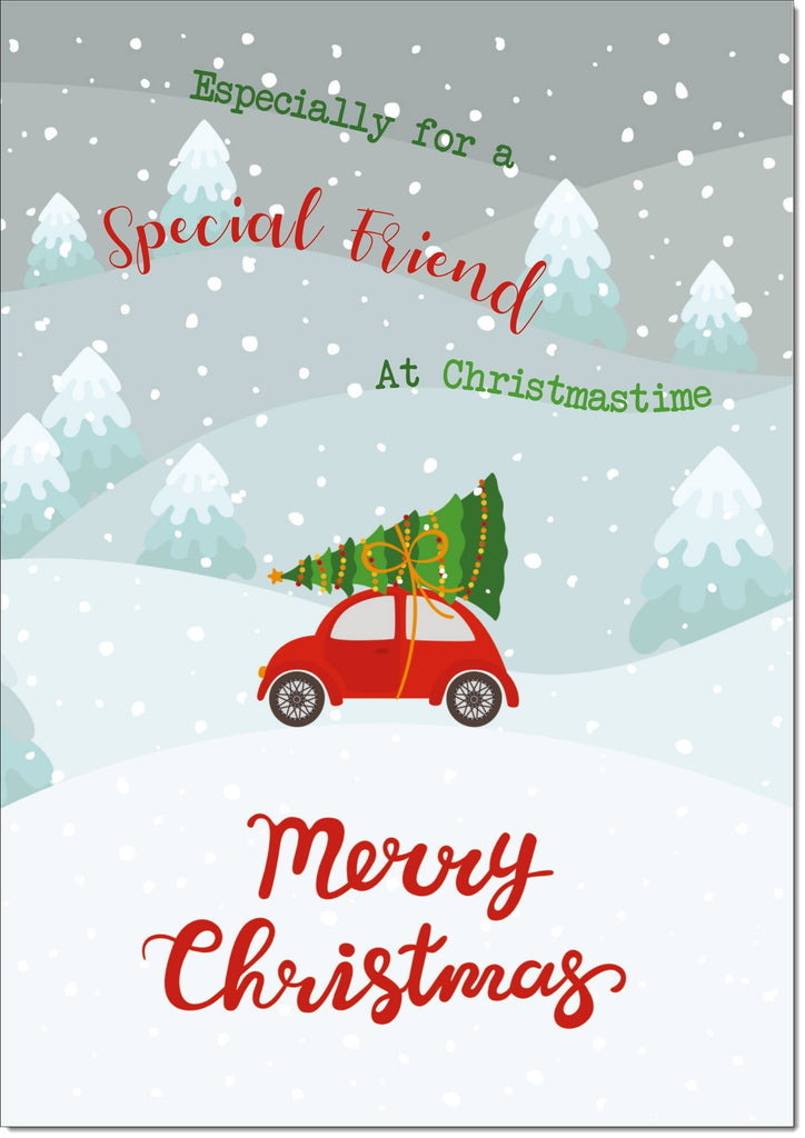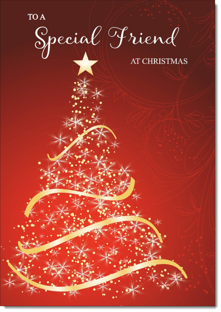 Special Friend Christmas Card Red Snowflake Christmas Tree