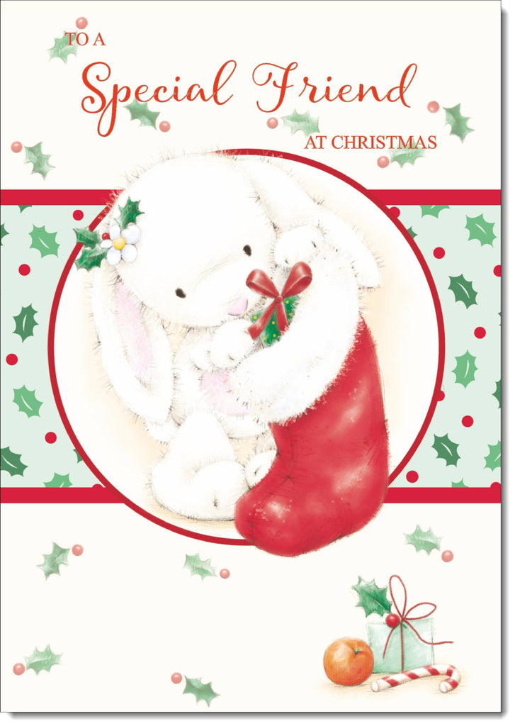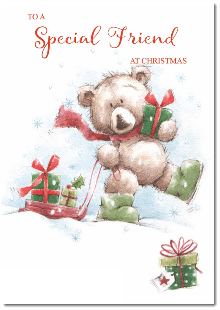 Special Friend Christmas Card Cute Bear in Christmas Parcel