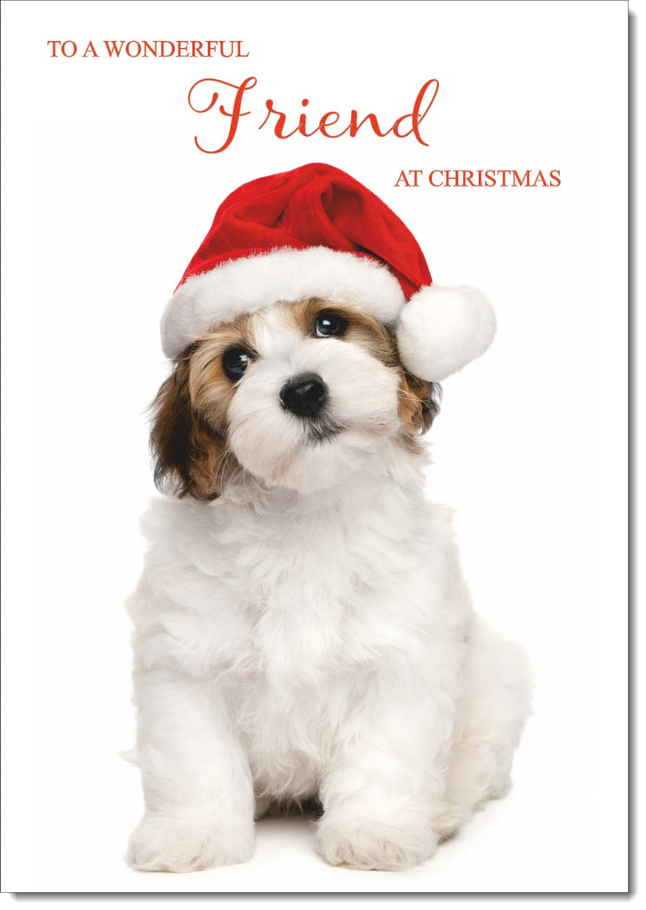 Friend Christmas Card Dog and Santa Hat