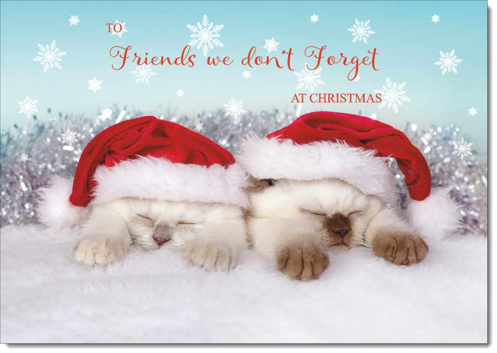 Friends We Don't Forget Christmas Card Ragdoll Kittens in Santa Hats