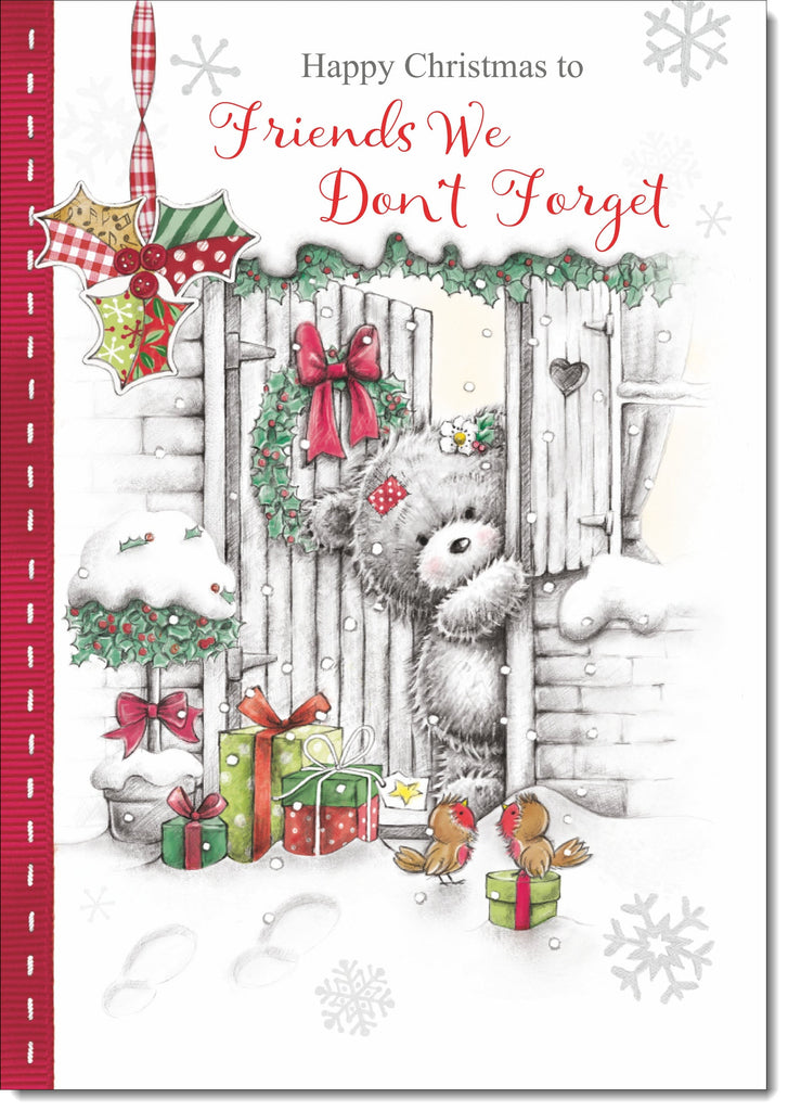 Friends We Don't Forget Christmas Card Grey Bear in Snow