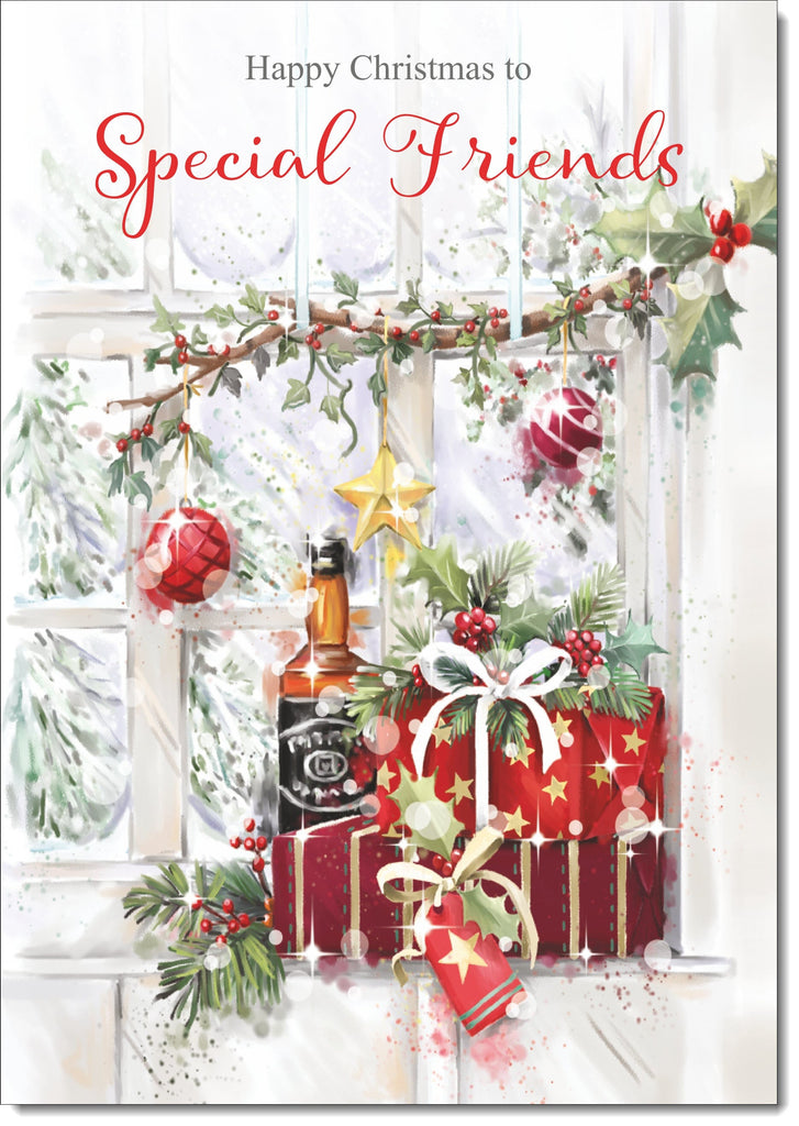 Friends We Don't Forget Christmas Card Two Champagne Glasses