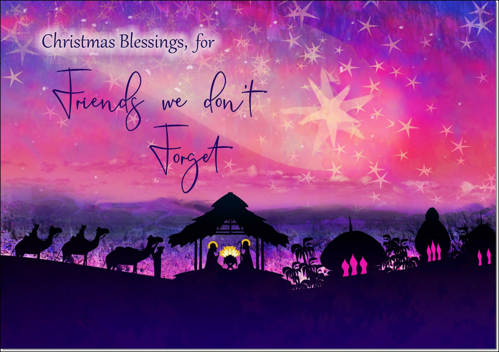 Friends We Don't Forget Christmas Card Nativity Scene Evening Watercolour