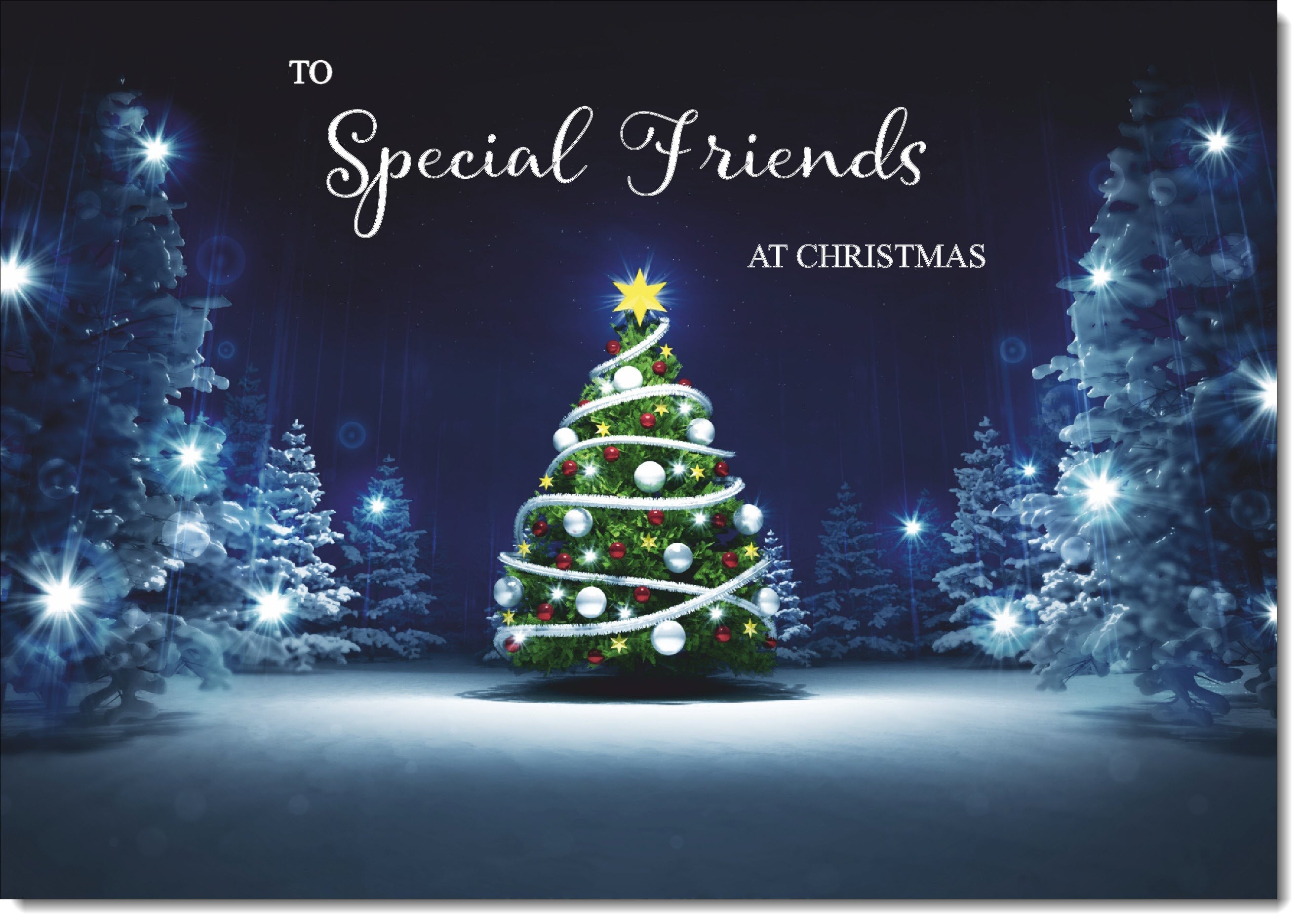 Special Friends Christmas Card Christmas Tree Lights in Dark Sky