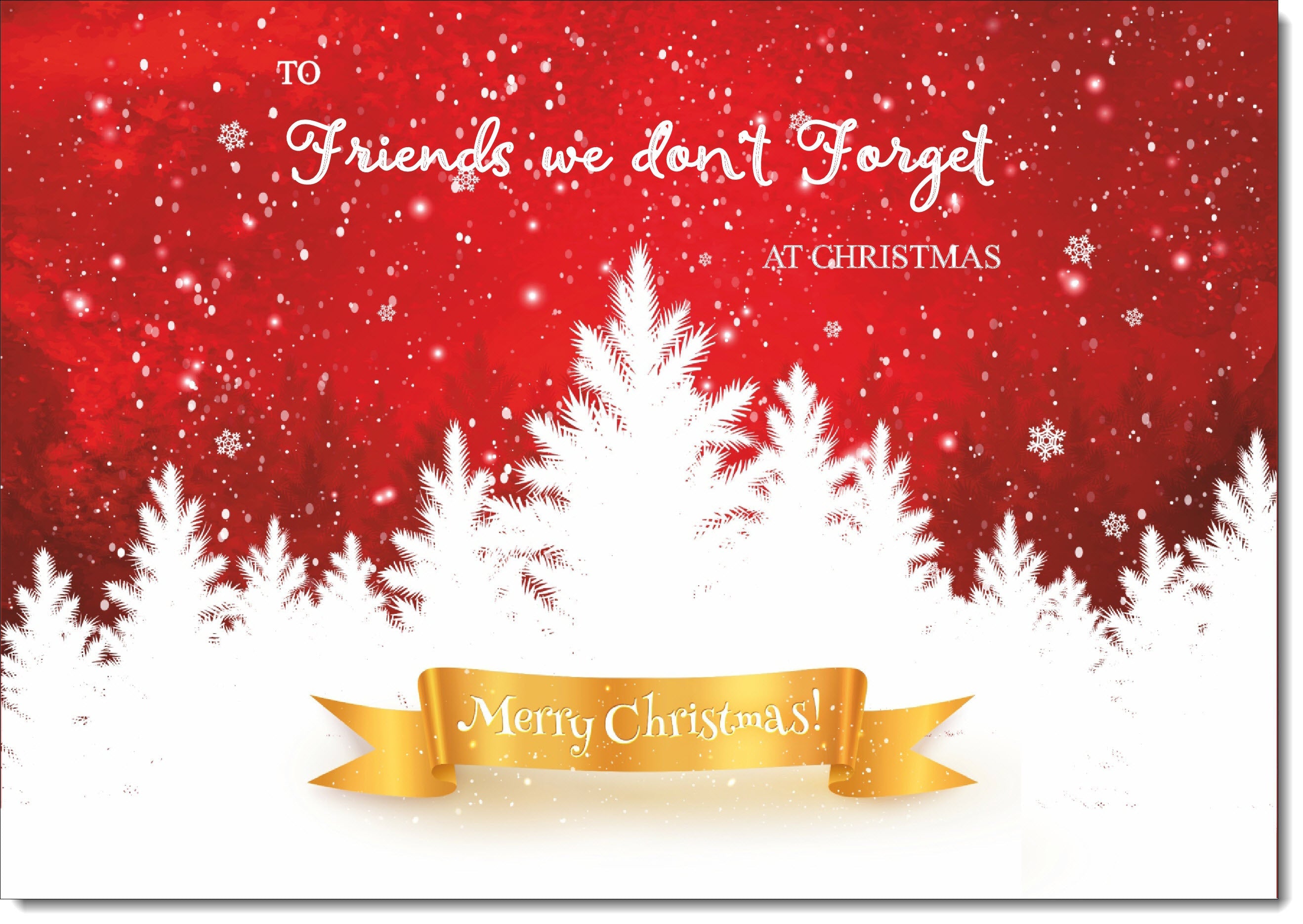 Friends We Don't Forget Christmas Card White Forest with Red Sky