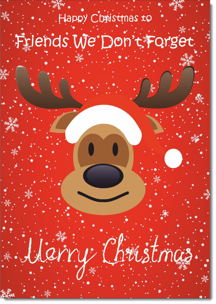 Friends We Don't Forget Christmas Card Rudolph on Red Background