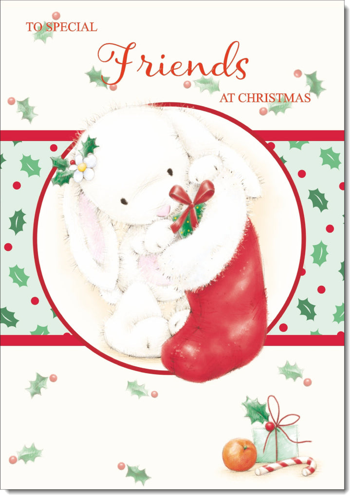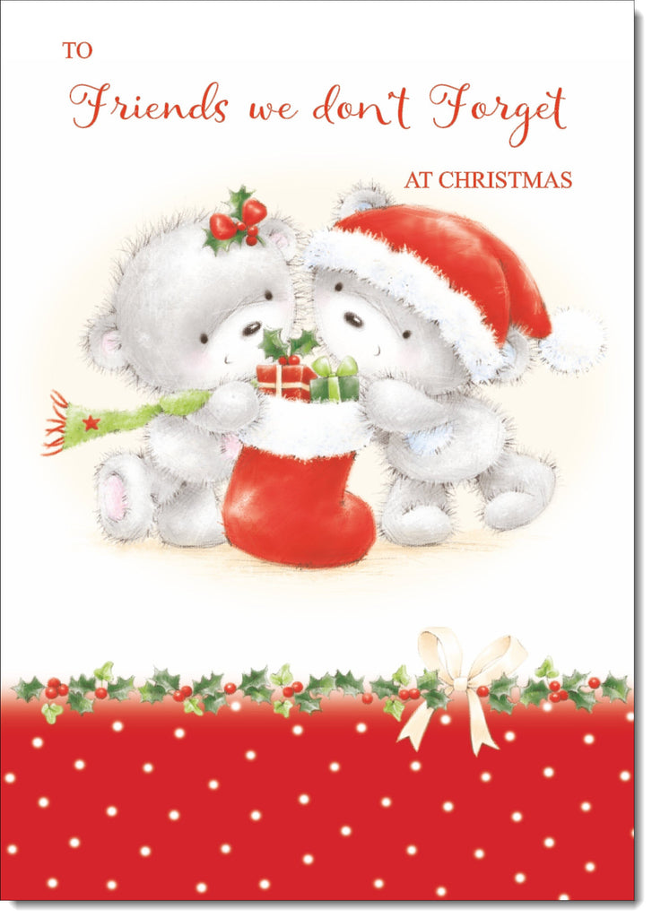 Friends We Don't Forget Christmas Card Cute Bears with Stocking