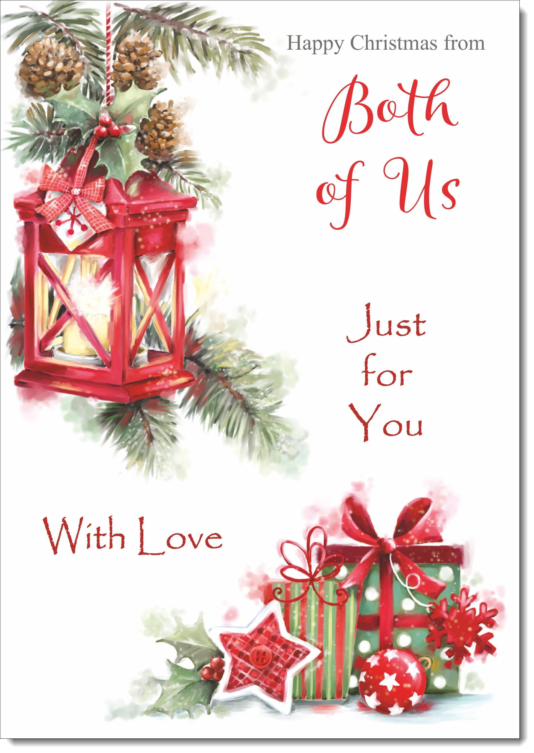 From Both Of Us Christmas Card Red Lantern & Christmas Presents