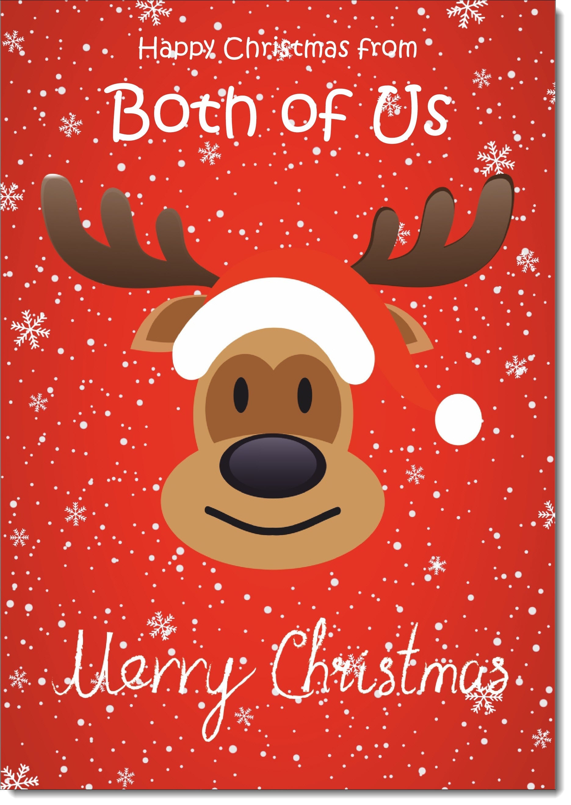 From Both Of Us Christmas Card Rudolph on Red Background