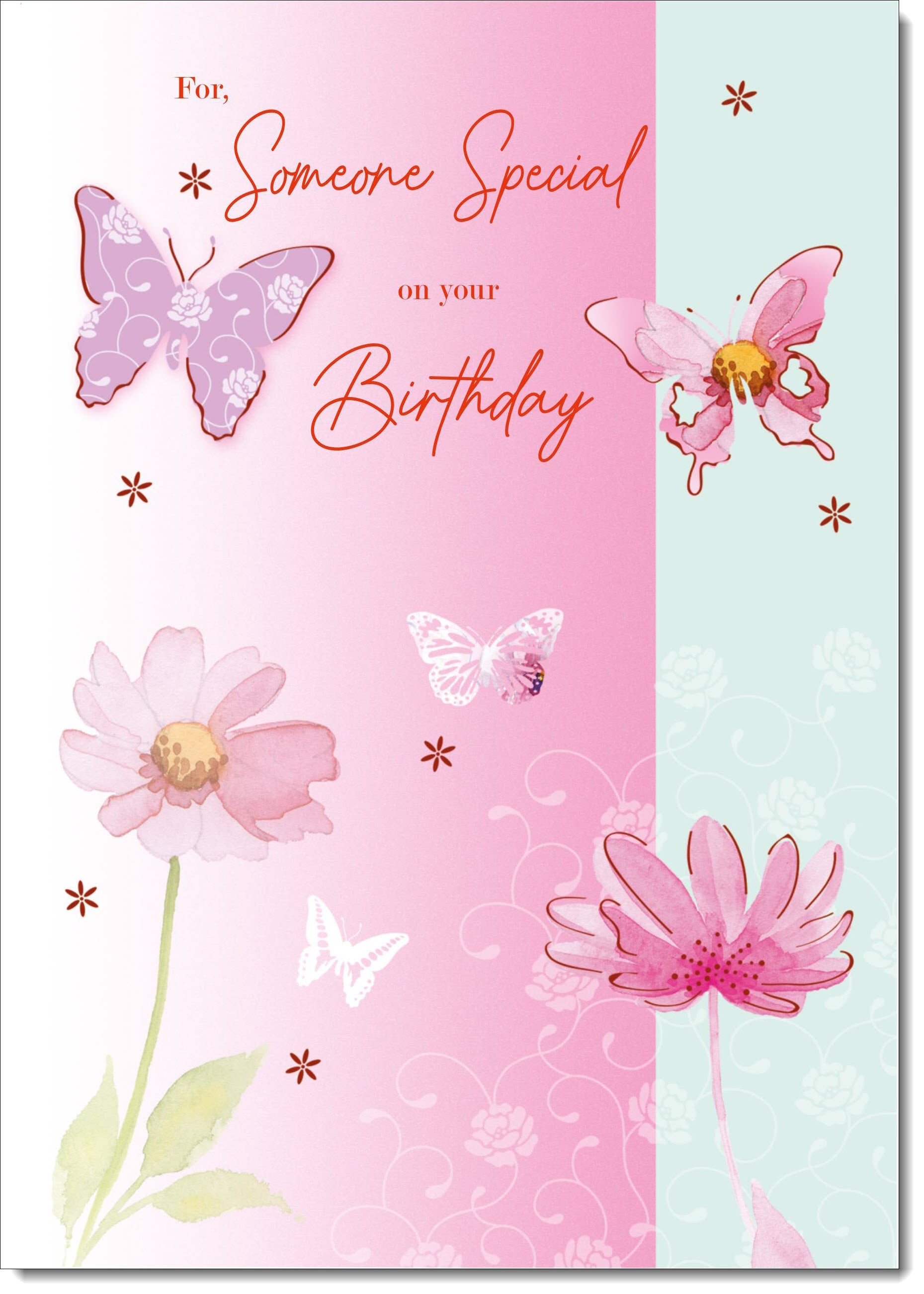 Someone Special Birthday Card for Her Butterflies and Flowers