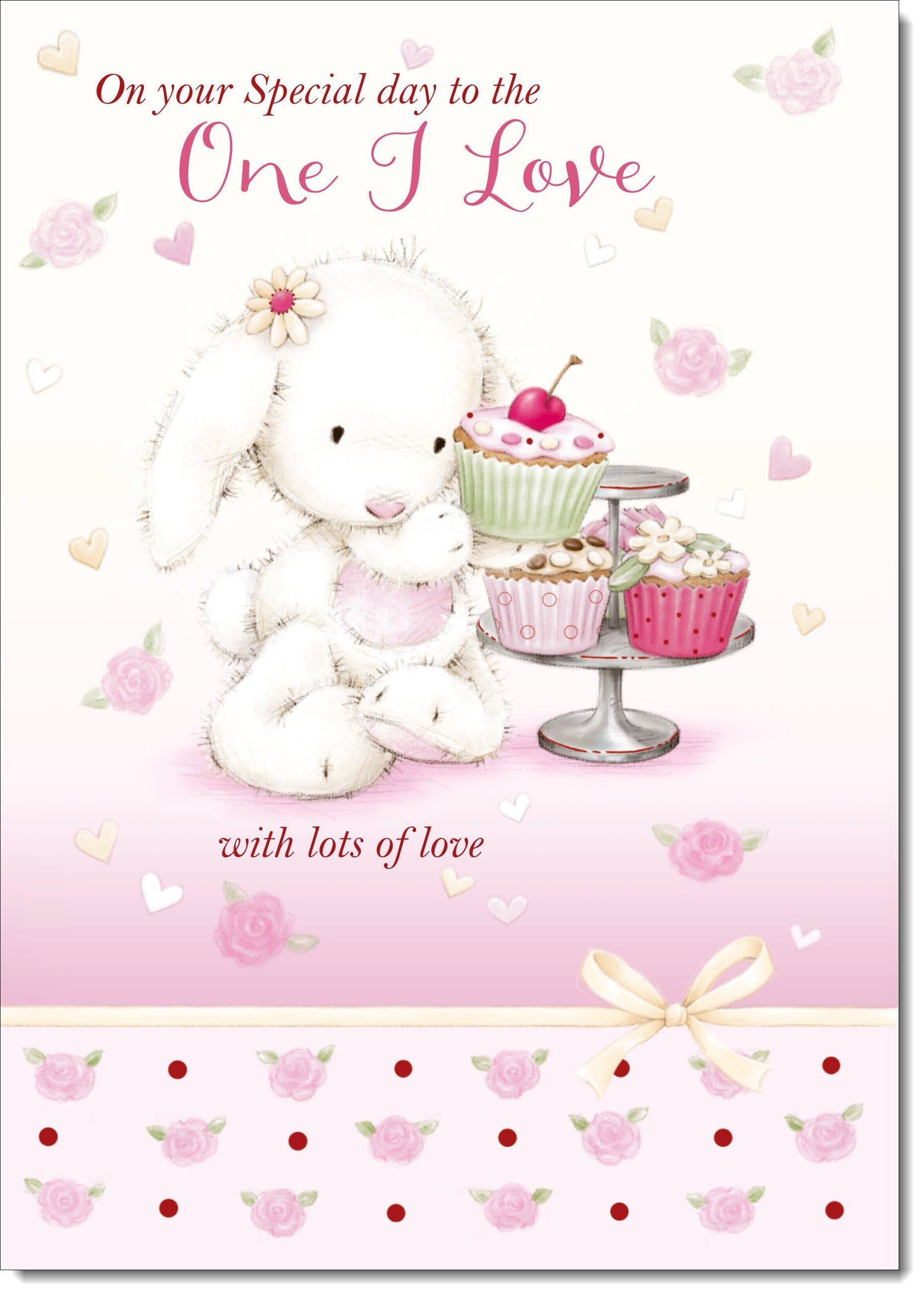 One I Love Birthday Card for Her Cute Rabbit with Cake