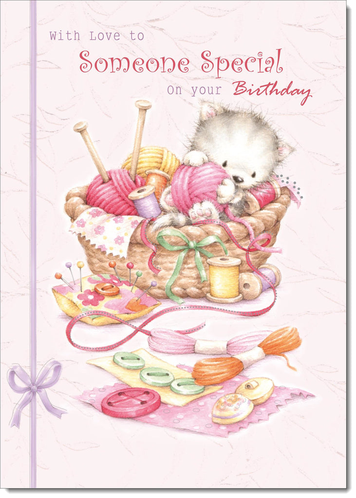 Someone Special Birthday Card for Her Kitten in Sewing Basket