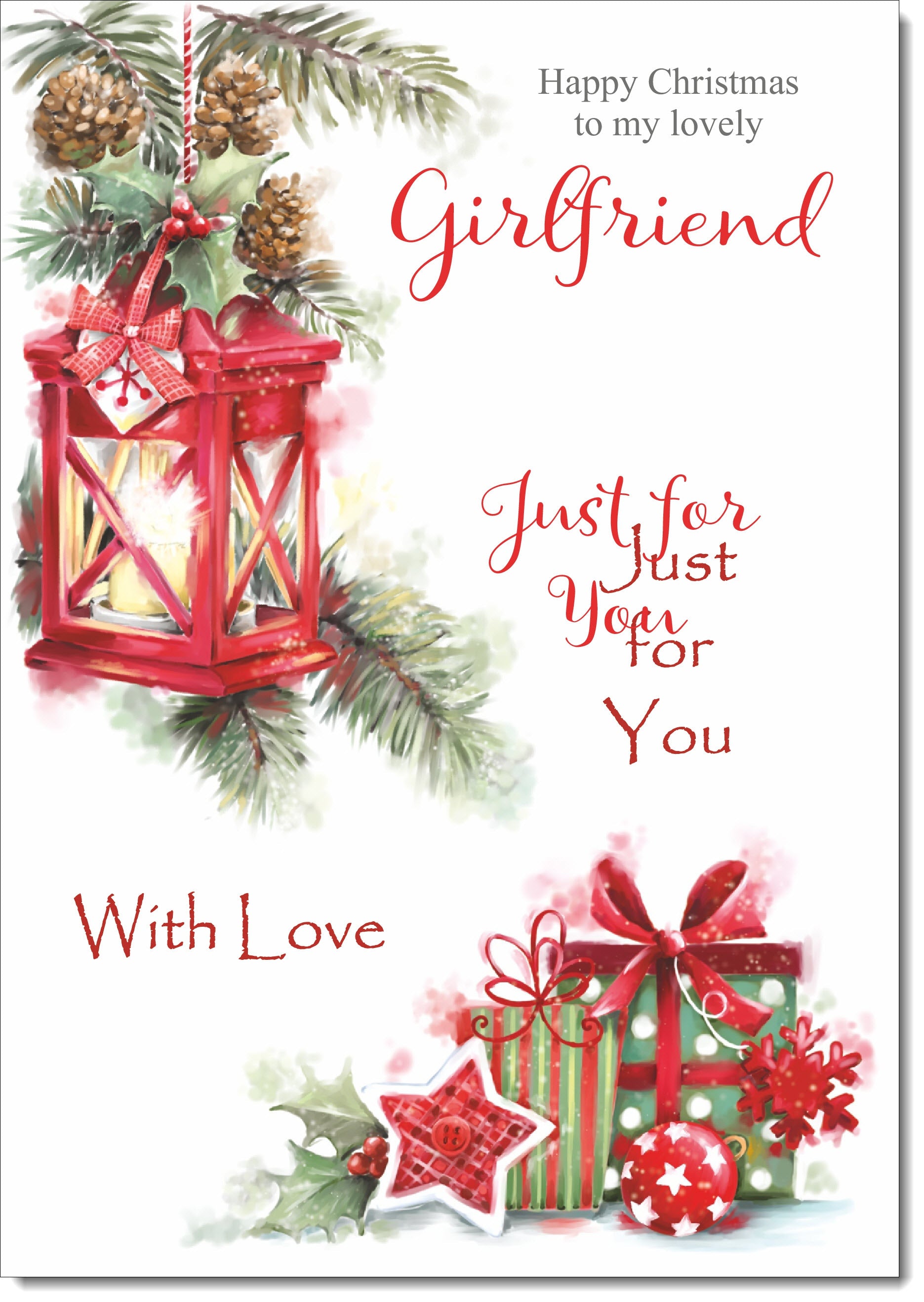 Girlfriend Christmas Card Red Lantern & Christmas Presents
