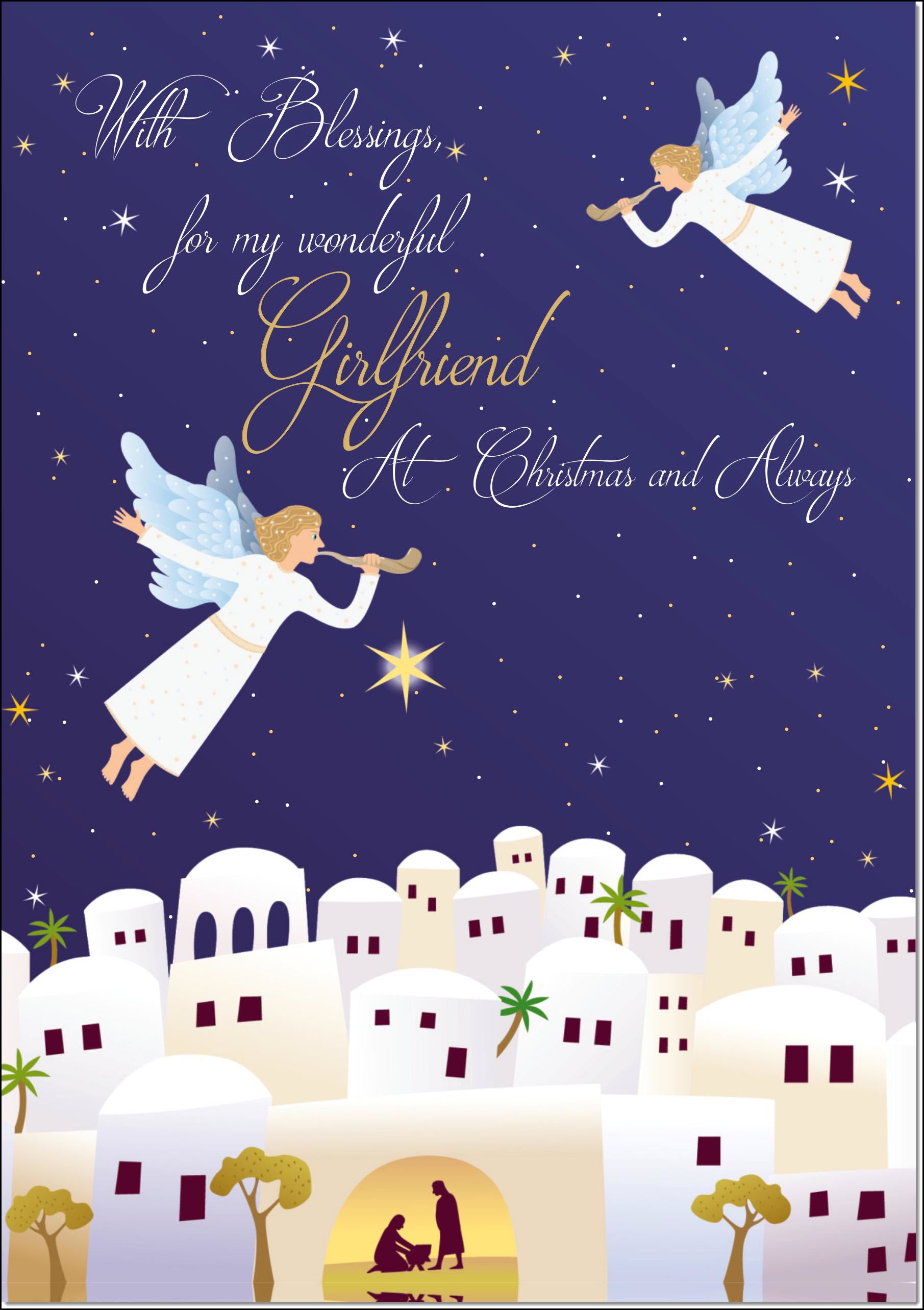 Girlfriend Christmas Card Nativity Scene Angels Bethlehem