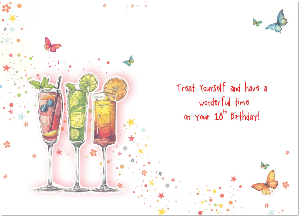 Goddaughter 18th Birthday Card Age 18 Cocktails and Butterflies