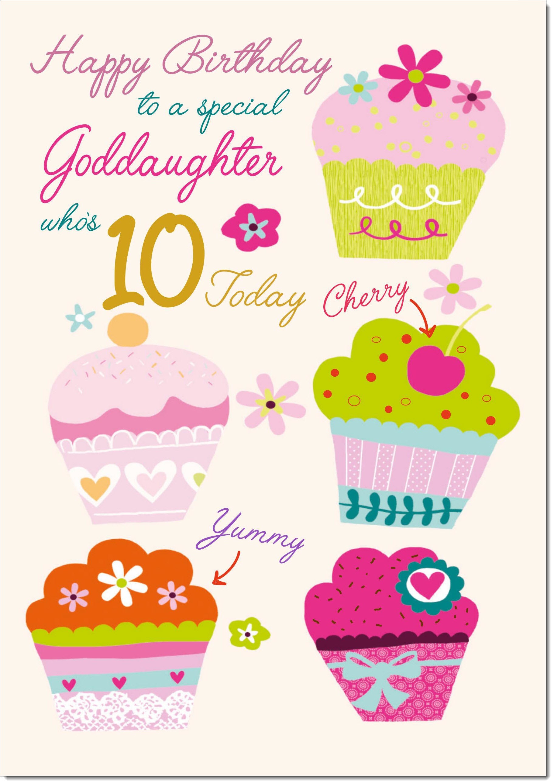 Goddaughter 10th Birthday Card Age 10 Bright Cupcakes