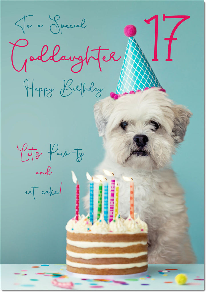 Goddaughter 17th Birthday Card Age 17 Birthday Dog